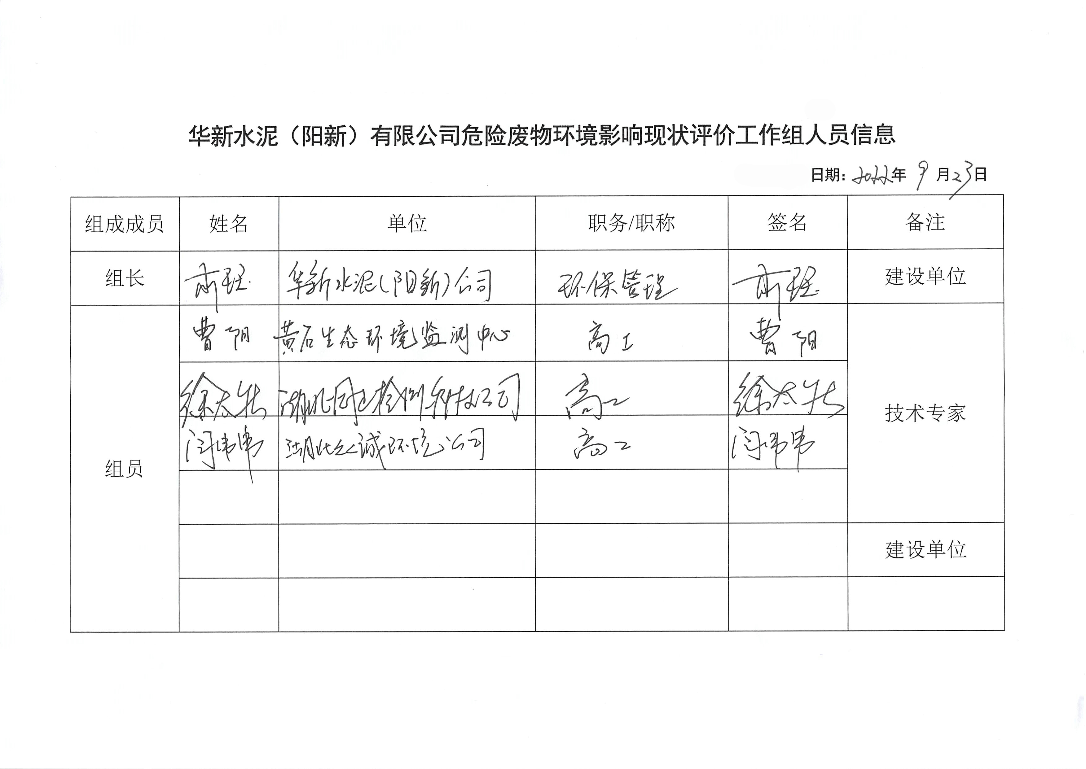 附件2:華新水泥(陽新)有限公司危險廢物環(huán)境影響現(xiàn)狀評價簽到表