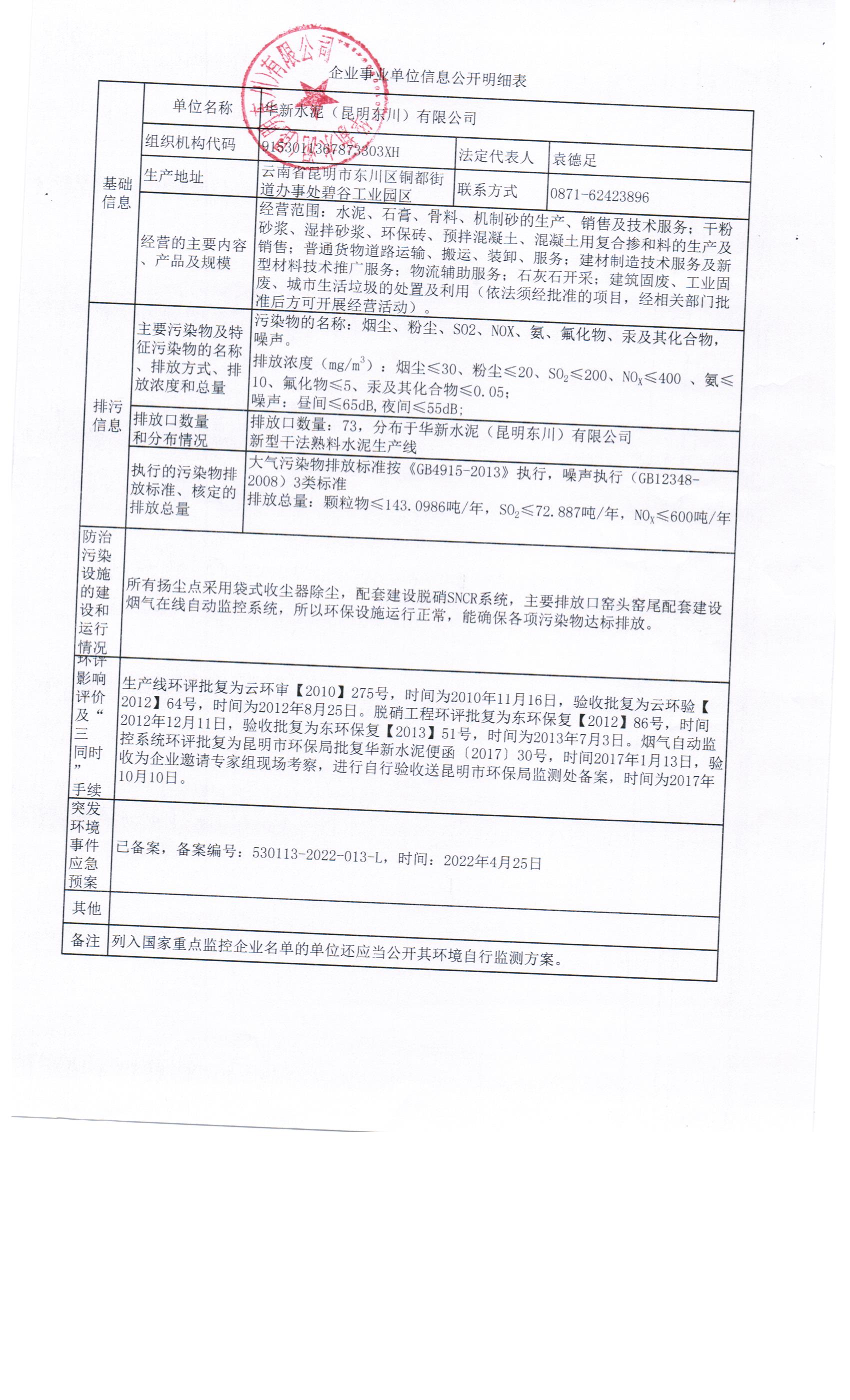 1、華新水泥(昆明東川)有限公司信息公開(kāi)明細(xì)表;